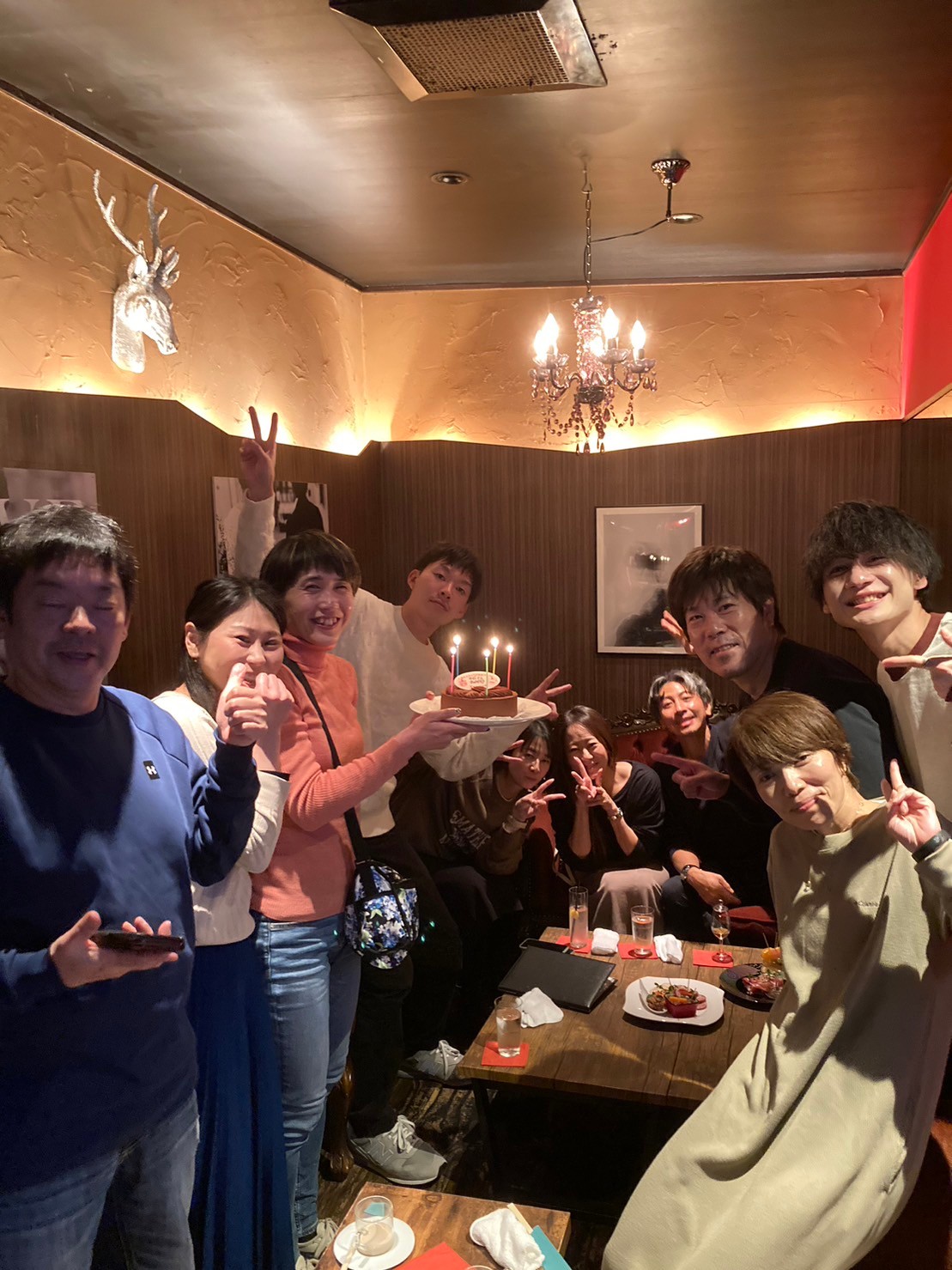 主宰が用意したケーキでお祝いして、「ちゃんと飲み」にGo!