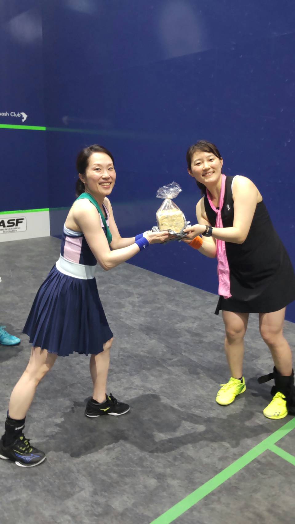 スカッシュは途切れ途切れ続けてこられたそうで、ショットも強いし、動きも軽やか。