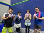 スカッシュを楽しんだ後は、恒例の懇親会。なんと本日がお誕生日という参加者がいらっしゃり、伊藤コーチが素敵なお祝いカードを作成してくださり、みんなでお祝いし、大いに盛り上がりました。