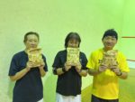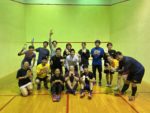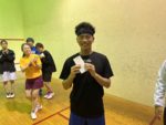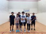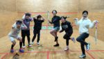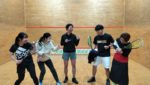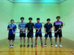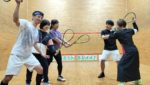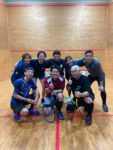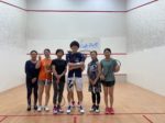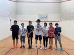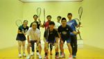 壁がヒノキ張りという珍しいコートで、道下コーチのもと、まずは宮崎(九州)のスカッシャーとの交流スカッシュ会の開始です。